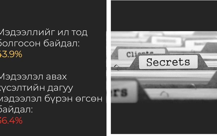 Глоб Интернэшнл байгууллагын хийсэн мониторингоос харахад мэдээллийг ил тод болгох ажил дөнгөж 43 хувьтай байгаа.